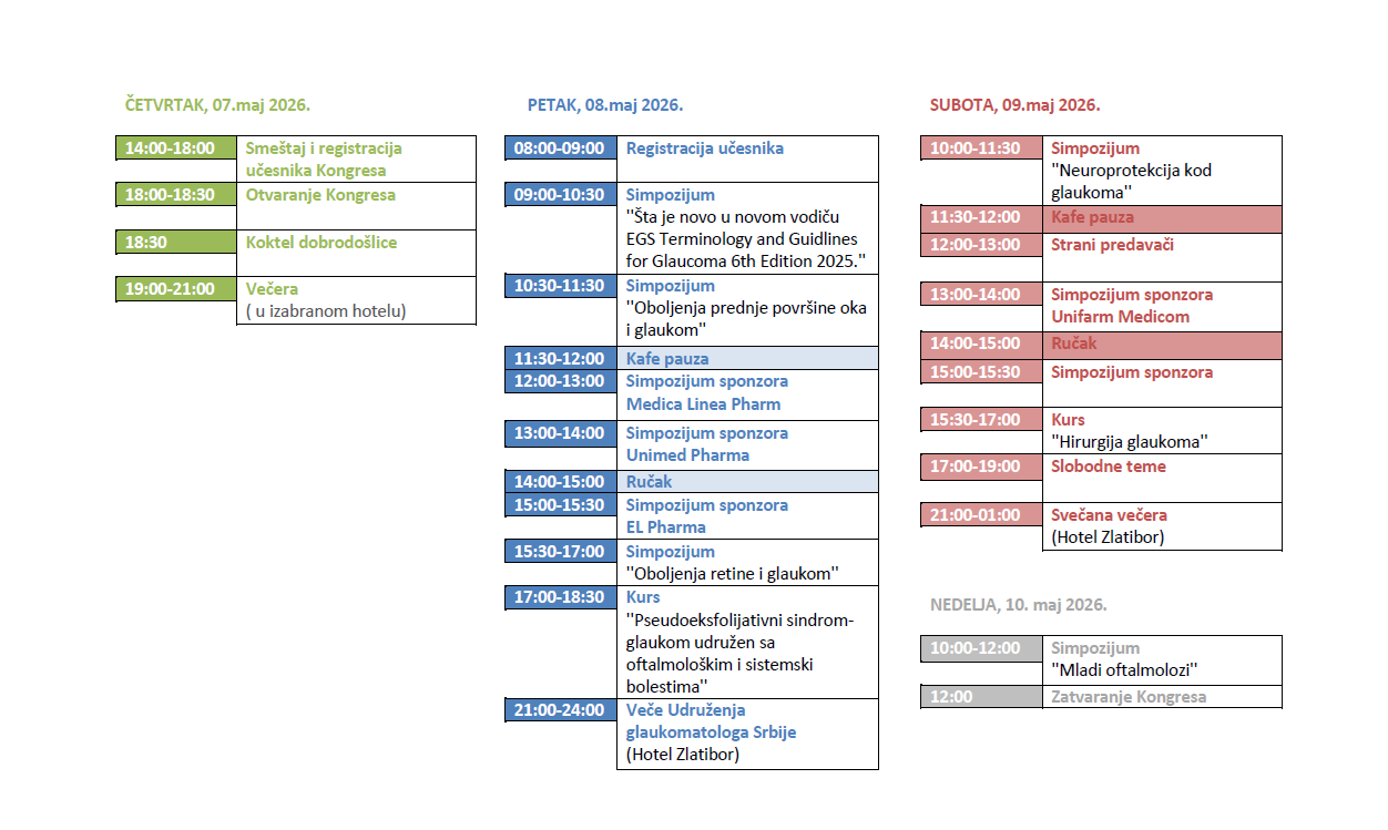 Dobro došli na 7. Kongres glaukomatologa Srbije sa medjunarodnim učešćem koji će se održati na Zlatiboru u hotelu Zlatibor od 07.05. do 10.05.2026.