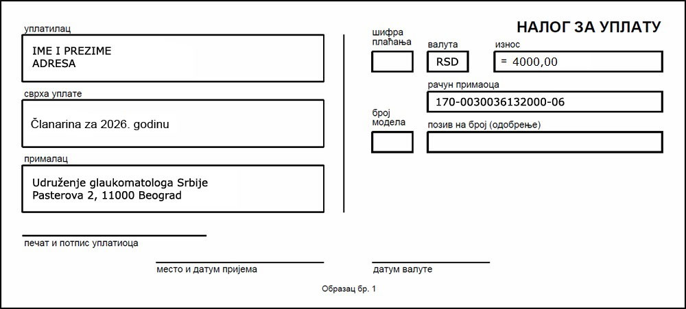 Dues should be paid to the bank account number 170-0030036132000-06 UniCredit bank, postal / money order or bank’s personal payment at the premises of the SGS (Pasterova street 2, Belgrade). The annual membership fee is 4,000.00 dinars.
